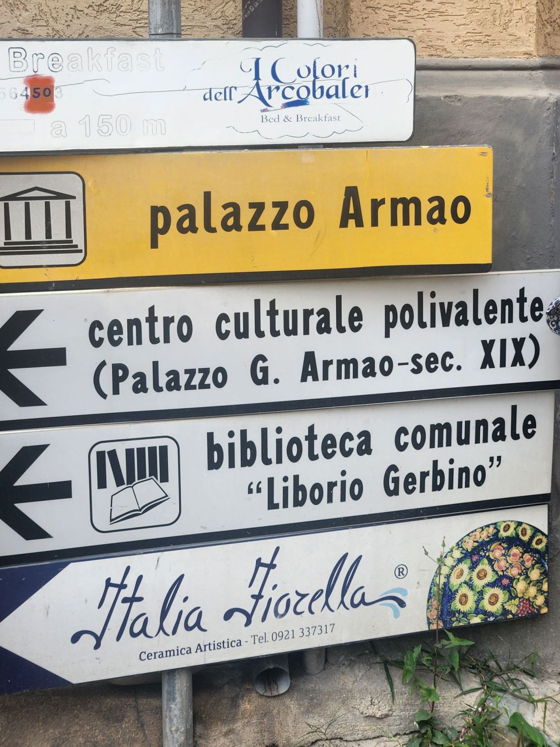 Up the street we go to find Palazzo Armao built in the architectural style of the late 19th century. It is here that we see a sign for the library and step inside. A young man working inside greets us. Using Google translate, we explain our mission. We are five sisters looking for our grandfather’s people, the Armao family. His eyes grow wide.